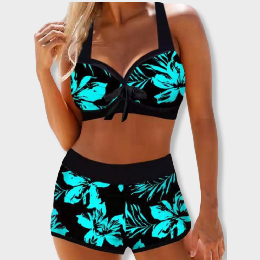 Kostium kąpielowy Anna łączy komfort i styl. Dzięki wysokiemu stanowi zapewnia korzystny krój i jednocześnie wsparcie. Delikatny kwiatowy wzór nadaje mu urokliwy, kobiecy wygląd, idealny na plażę lub basen.