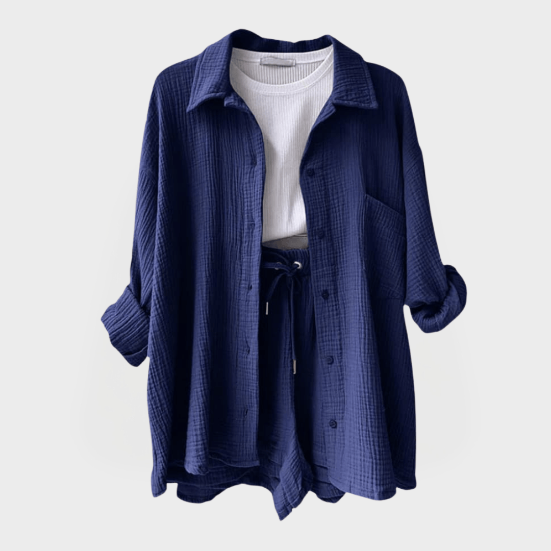 Nasz Anna™ | Wygodny letni zestaw to idealna propozycja na gorące dni, kiedy zależy Ci na wygodzie, ale także na modnym wyglądzie. Dzięki lekkiej, przewiewnej tkaninie i nowoczesnemu, uniwersalnemu designowi, zestaw ten zapewni Ci uczucie chłodzenia i swobody przez cały dzień, niezależnie od tego, czy spędzasz czas przy basenie, czy wybierasz się na niezobowiązujące spotkanie. Poczuj się pewnie i stylowo, gdziekolwiek jesteś!