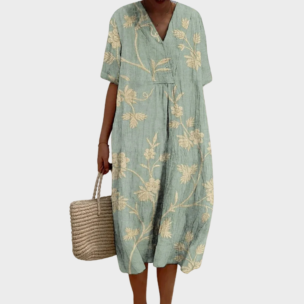 Prosty krój i naturalnie zaznaczona talia sprawiają, że ta sukienka pasuje do wielu okazji – od plażowych spacerów po miejskie spotkania. Łatwo zestawić ją z dodatkami w stylu boho lub nadać jej elegancki charakter przy pomocy subtelnej biżuterii i sandałów na obcasie.